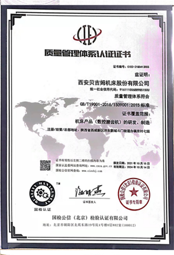 西安貝吉姆機(jī)床股份有限公司成立于2009年07月,是一家專業(yè)從事精密齒輪磨削機(jī)床系列產(chǎn)品的研發(fā)、制造、銷售的高新技術(shù)企業(yè)。